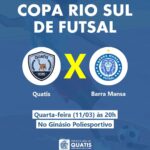 Bora torcer! A Copa Rio Sul de Futsal vai começar para Quatis! O evento, de iniciativa da TV Rio Sul em parceria com as prefeituras da região, chega à sua 31ª edição em 2025 e o município já tem data marcada para começar a jornada rumo ao título. Neste sábado, dia 15, a partir das 14 horas, o time quatiense