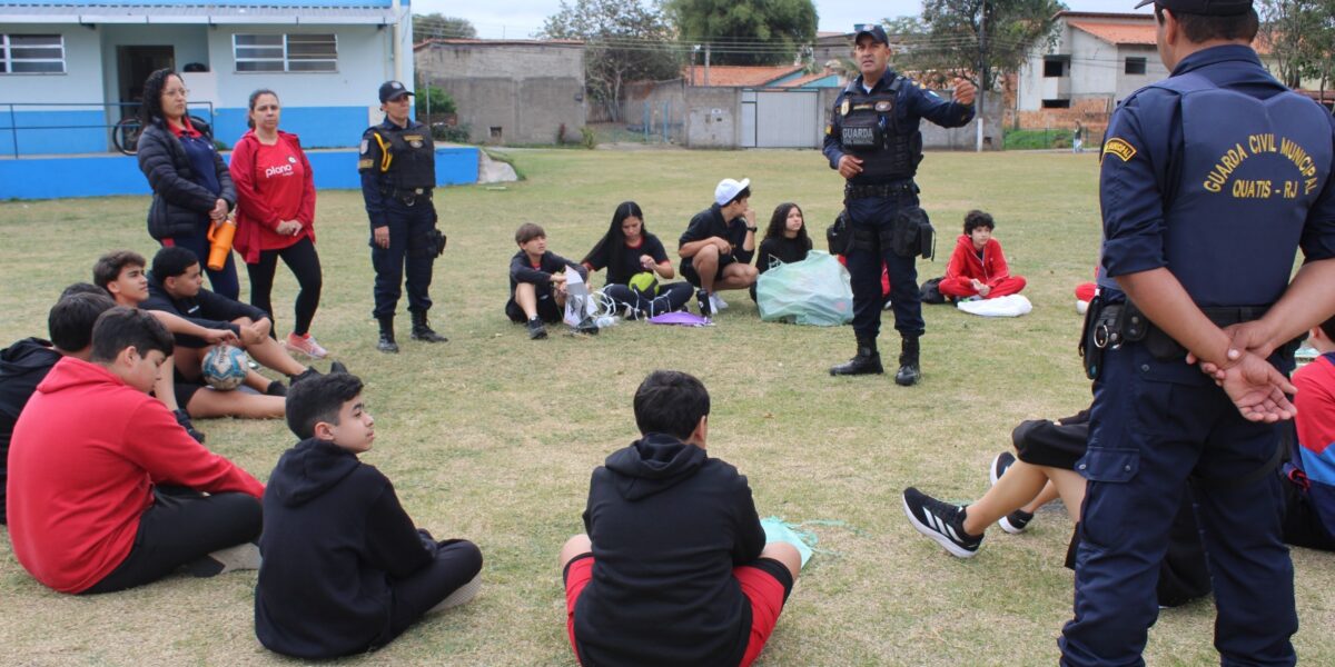 Agentes da Patrulha Escolar de Quatis foram até o Parque da Cidade, no bairro Jardim Polastri, para realizar uma ação educativa com os alunos do Colégio Plano A sobre o uso do cerol e da linha chilena. A atividade aconteceu no início do mês e foi marcada por diversão e conscientização entre os estudantes. Por meio de uma dinâmica ao