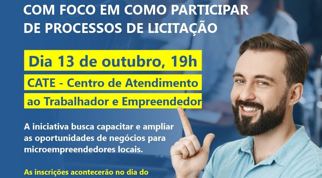 O Centro de Atendimento ao Trabalhador e Empreendedor (CATE) de Quatis vai sediar uma palestra sobre Orientação ao Microempreendedor, com foco em como participar de processos de licitação. O evento acontece na próxima segunda-feira, dia 13, às 19 horas, no CATE, que fica na Rua Nossa Senhora do Rosário, nº 185, no centro da cidade. A iniciativa busca capacitar e