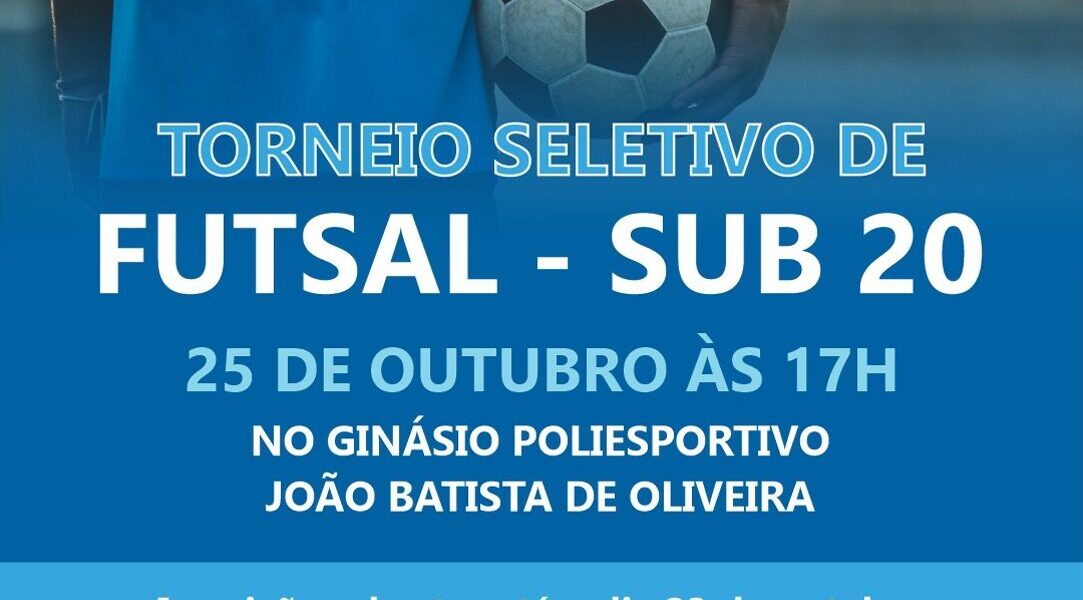Vem aí o Torneio Seletivo de Futsal Sub-20 de Quatis! O evento acontece no dia 25 de outubro (sábado), a partir das 17 horas, no Ginásio Poliesportivo João Batista de Oliveira, o Ginásio Municipal do bairro Nossa Senhora do Rosário. As inscrições já estão abertas e vão até o próximo dia 23, na Secretaria Municipal de Esporte e Lazer (SMEL),