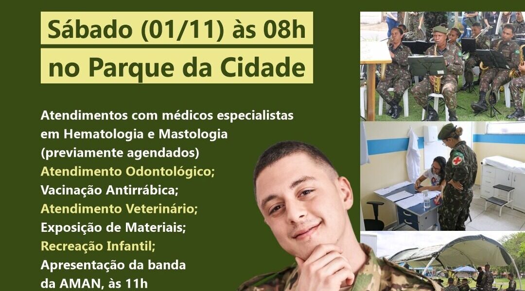 O Parque da Cidade do bairro Jardim Polastri, em Quatis, vai receber, neste sábado (1º), a Ação Cívico-Social da Academia Militar das Agulhas Negras (AMAN), em parceria com a prefeitura. O evento começa a partir das 8h e segue até às 15 horas, com diversas atividades recreativas e serviços em saúde, como: Atendimentos com médicos especialistas em Hematologia e Mastologia