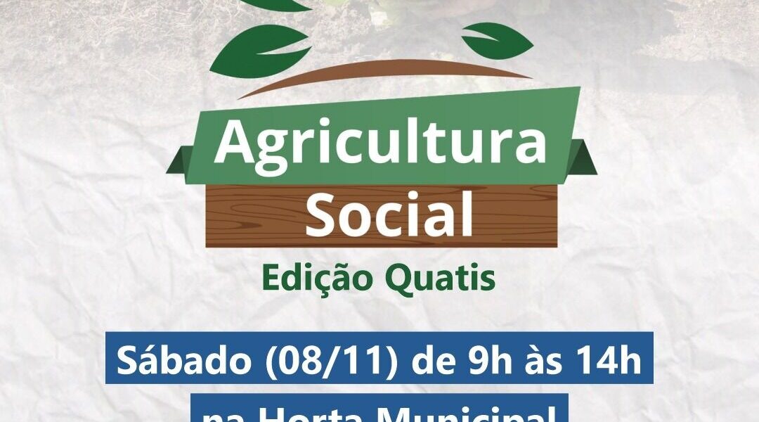 A Prefeitura de Quatis convida para participar da 11ª edição do Programa Agricultura Social, uma iniciativa das secretarias de Agricultura, Pecuária e Abastecimento e de Desenvolvimento Social e Direitos Humanos do Estado do Rio de Janeiro, por meio da Pesagro-Rio. O evento vai acontecer no dia 8 de novembro, das 9h às 14h, na Horta Municipal de Quatis. O local