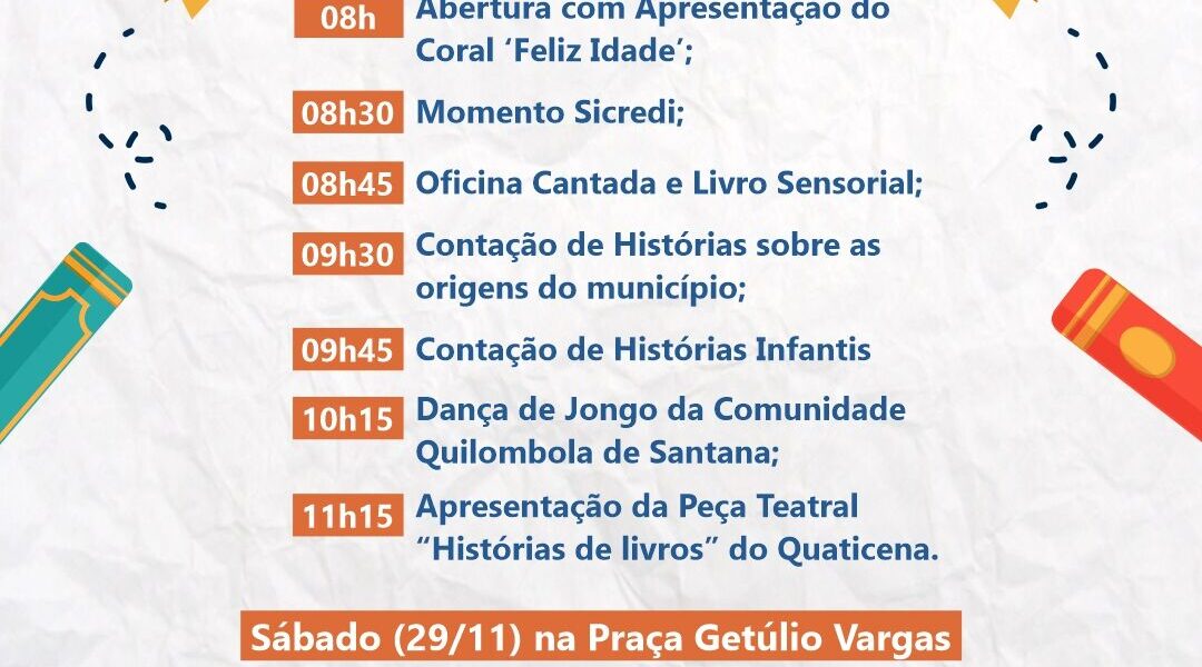 A Feira Literária de Quatis, a FLIQ “Entre Contos e Encantos”, acontece neste sábado (29), na Praça da Matriz. O evento começa a partir das 8h e segue até às 12h com uma programação recheada de atividades do mundo da cultura e da leitura. A entrada é gratuita e aberta à toda a família. Veja a programação: 8h – Abertura
