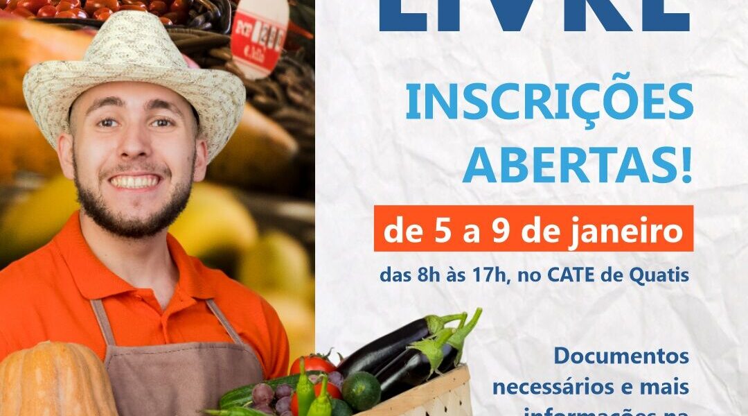 Os interessados em fazer parte da feira, já podem se preparar para o credenciamento, que inicia hoje, dia 5, e vai até dia 9 de janeiro, das 8h às 17h, no CATE de Quatis, localizado na Rua Nossa Senhora do Rosário, n° 185, no Centro. A Feira Livre é uma iniciativa nova que visa valorizar MEI’s e produtores rurais, através