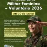 Atenção, mulheres de Quatis! A Prefeitura de Quatis informa sobre o Alistamento Militar Feminino, de forma voluntária, destinado exclusivamente às mulheres nascidas em 2008. As interessadas poderão se alistar e passarão pelo mesmo processo seletivo aplicado aos homens. Caso sejam aprovadas na seleção geral e na seleção complementar, poderão incorporar ao Exército Brasileiro como serviço militar voluntário, com duração inicial