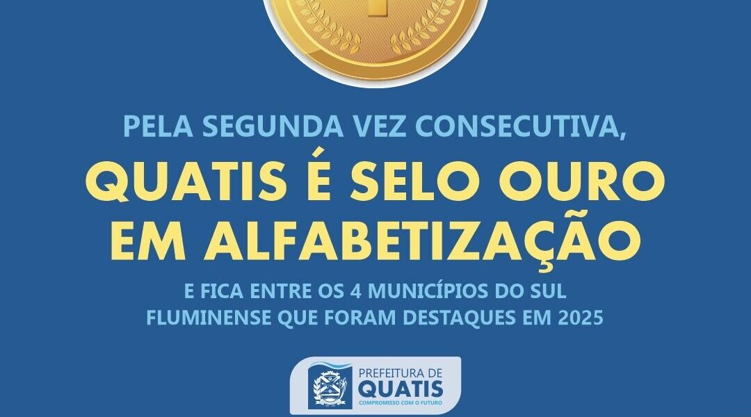 O município de Quatis conquistou, pela segunda vez consecutiva, o Selo Ouro no Selo Nacional Compromisso com a Alfabetização 2025. A premiação, instituída pelo Ministério da Educação, por meio do Edital MEC n° 10/2025, reconhece os municípios brasileiros que se destacaram na garantia da alfabetização na idade certa e com qualidade da educação pública. O selo avalia as metas alcançadas