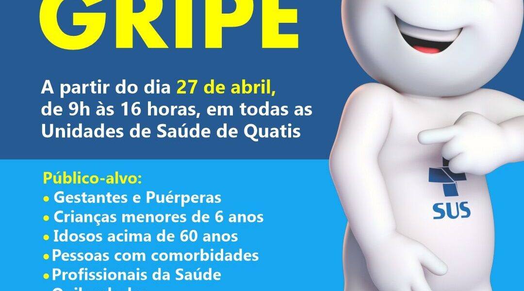Quatis retomou, nesta segunda-feira (27), à Campanha de Vacinação contra a Gripe. A ação continua após a chegada de uma nova remessa de doses da vacina e a ampliação dos grupos prioritários. Além do público-alvo da primeira etapa, que inclui gestantes e puérperas, idosos acima de 60 anos e crianças de até 5 anos de idade, agora também podem se