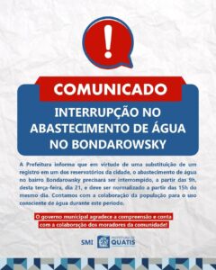 Comunicado: Interrupção no Abastecimento de Água no Bondarowsky