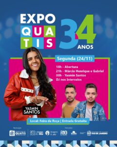 A nossa festa continua nesta segunda-feira (24), noite de véspera de aniversário da cidade. A Feira da Roça recebe ninguém mais e ninguém menos que YASMIN SANTOS. A cantora, que é uma das principais vozes femininas do sertanejo atual, chega para fazer aquela festa que a galera ama, com o melhor do gênero. Mas a festa ainda promete muito mais