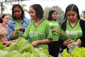 Os adolescentes do programa Produtor Mirim de Quatis tiveram o primeiro dia de colheita na Horta Municipal após a reativação do local. A atividade aconteceu na última quinta-feira (18) e foi marcada pela retomada da produção de hortaliças, que fazem parte das ações do coletivo que une agricultura e cidadania. Em um ato simbólico, os alunos do programa puderam realizar