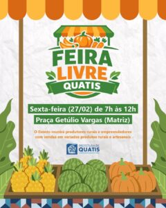 Evento reunirá produtores rurais e empreendedores com vendas em variados produtos rurais e artesanais A Prefeitura de Quatis vai realizar, na próxima sexta-feira (27), a 2ª Feira Livre da cidade. Iniciativa da Secretaria Municipal de Desenvolvimento Econômico Urbano e Rural, o objetivo é valorizar produtores rurais e também fomentar a economia local, através do comércio rural e empreendedor. O evento