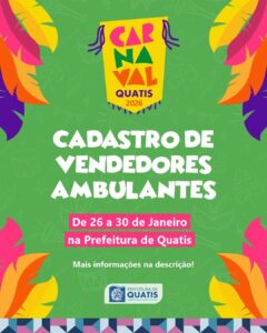 A Prefeitura de Quatis inicia, nesta segunda-feira (26), o cadastramento para autorização e regulação dos desfiles de blocos de rua durante o Carnaval Quatis 2026. Os interessados em fazer parte da programação dos blocos de rua já podem se preparar para desfilar nas ruas da cidade durante a festa de foliões. O cadastramento dos blocos de rua tem como objetivo