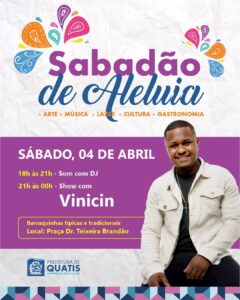 Prefeitura realizará 5ª edição do Sabadão de Aleluia com atrações musicais em Quatis