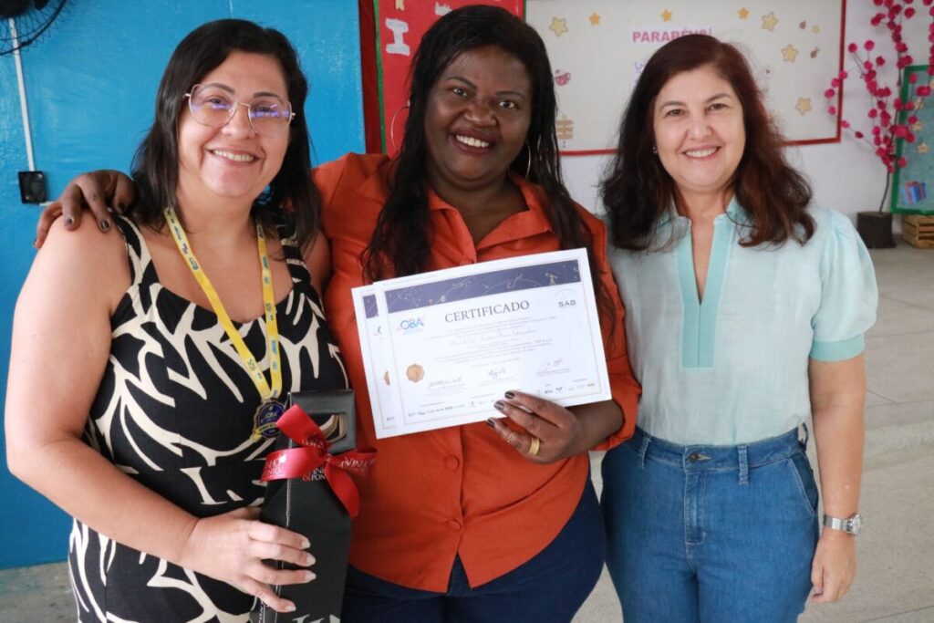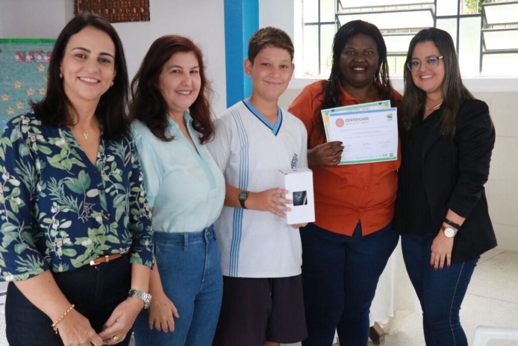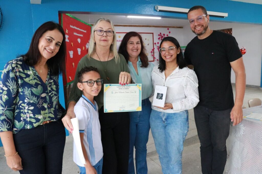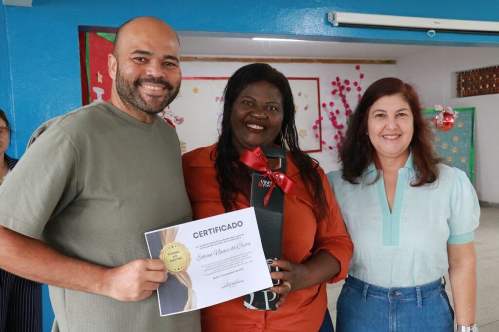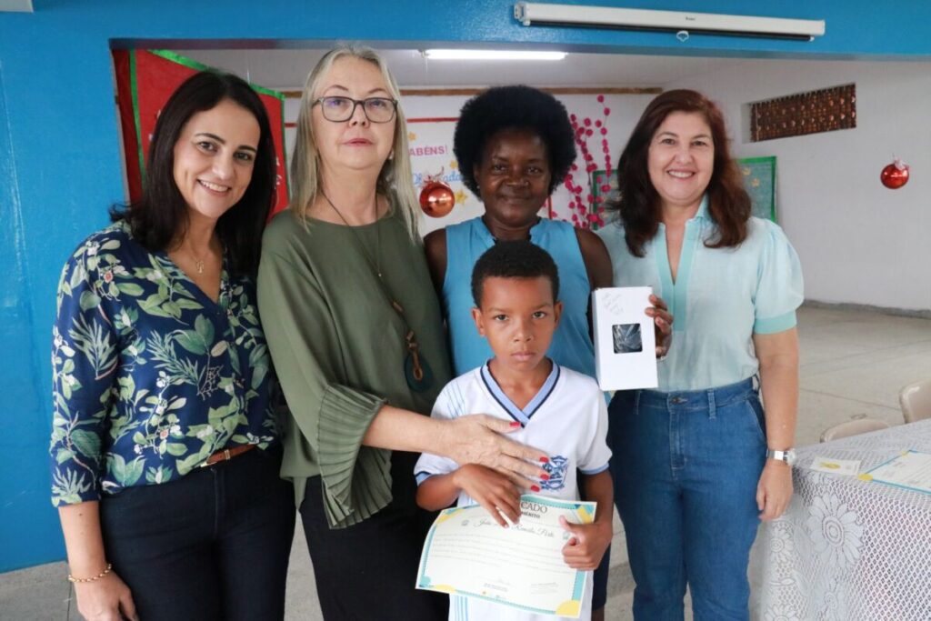 A cerimônia de premiação contou com a presença da equipe diretora das escolas, professores e familiares dos alunos premiados. Representando a prefeitura, também marcaram presença a vice-prefeita e secretária de Educação, Ivone Bento, e a subsecretária de Educação, Giovana Mello, que participaram da entrega dos certificados.