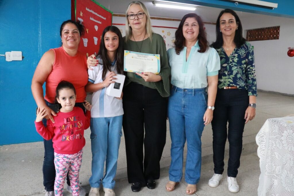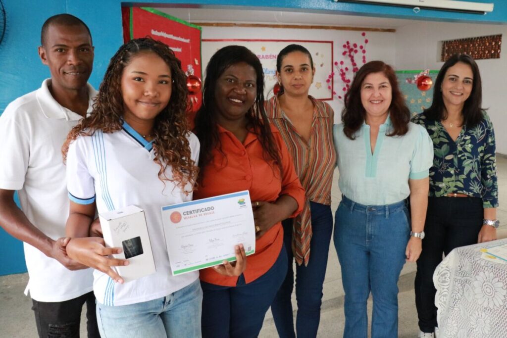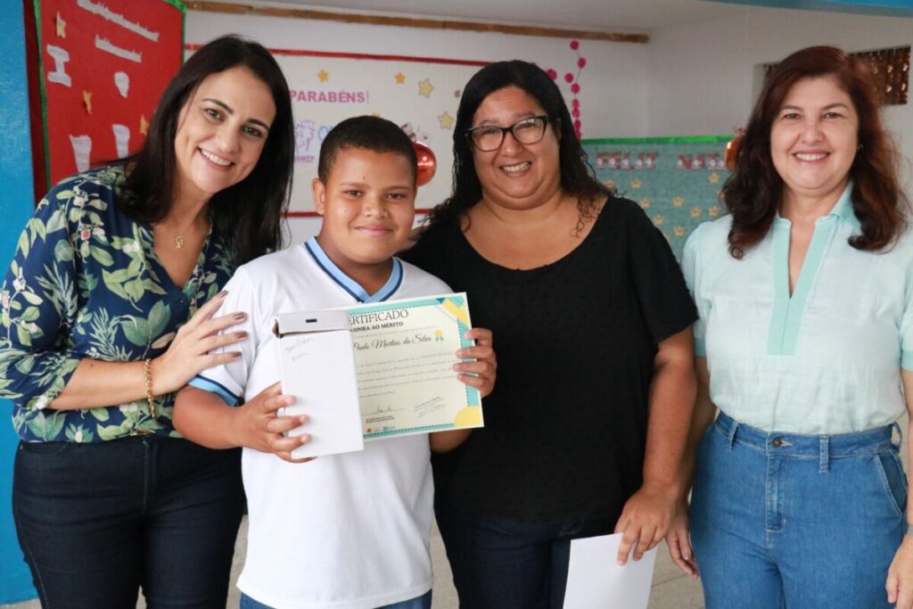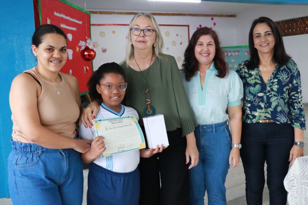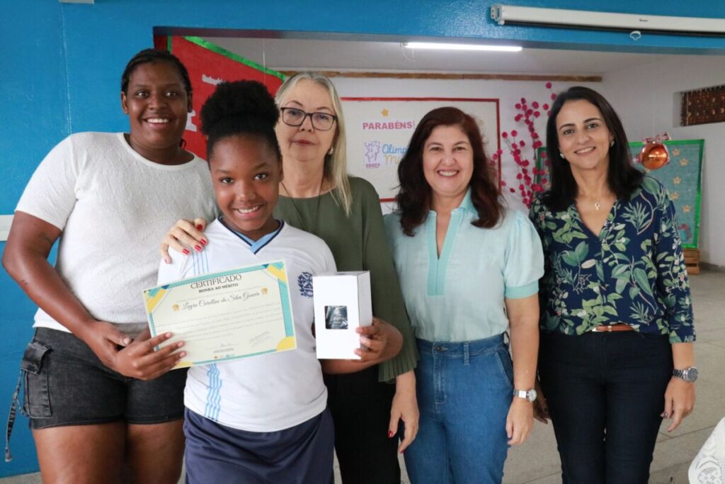 A cerimônia de premiação contou com a presença da equipe diretora das escolas, professores e familiares dos alunos premiados. Representando a prefeitura, também marcaram presença a vice-prefeita e secretária de Educação, Ivone Bento, e a subsecretária de Educação, Giovana Mello, que participaram da entrega dos certificados.