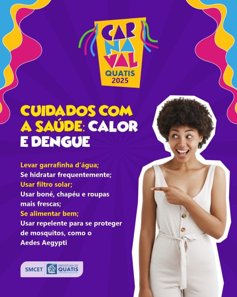 Falta pouco para o início do Carnaval Quatis 2025 e a PMQ separou algumas dicas de cuidados com a saúde e o bem-estar para serem adotados nestes próximos dias de folia.