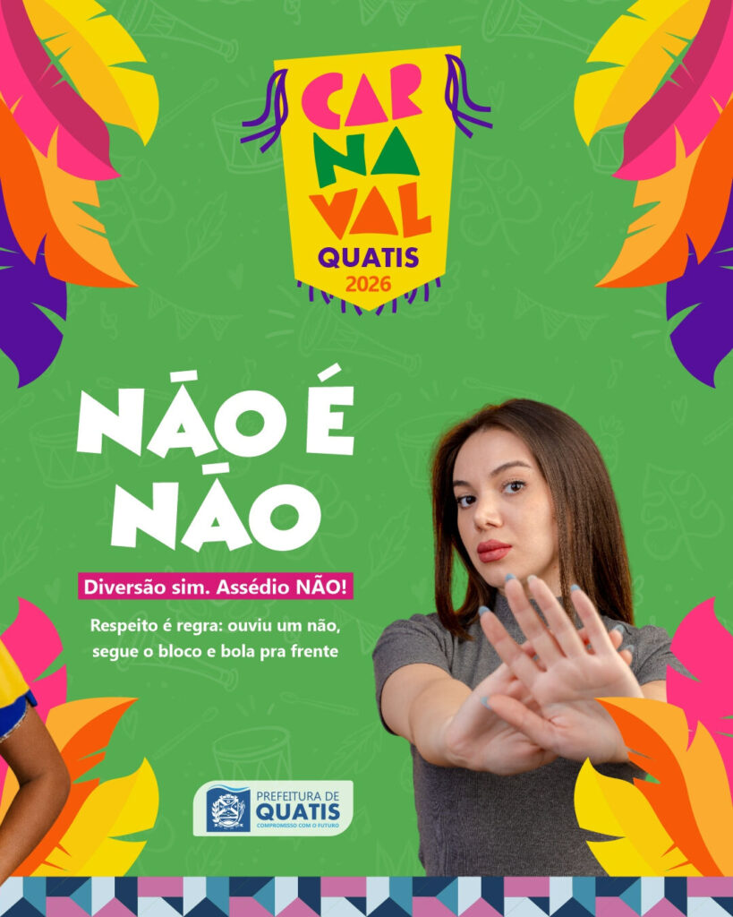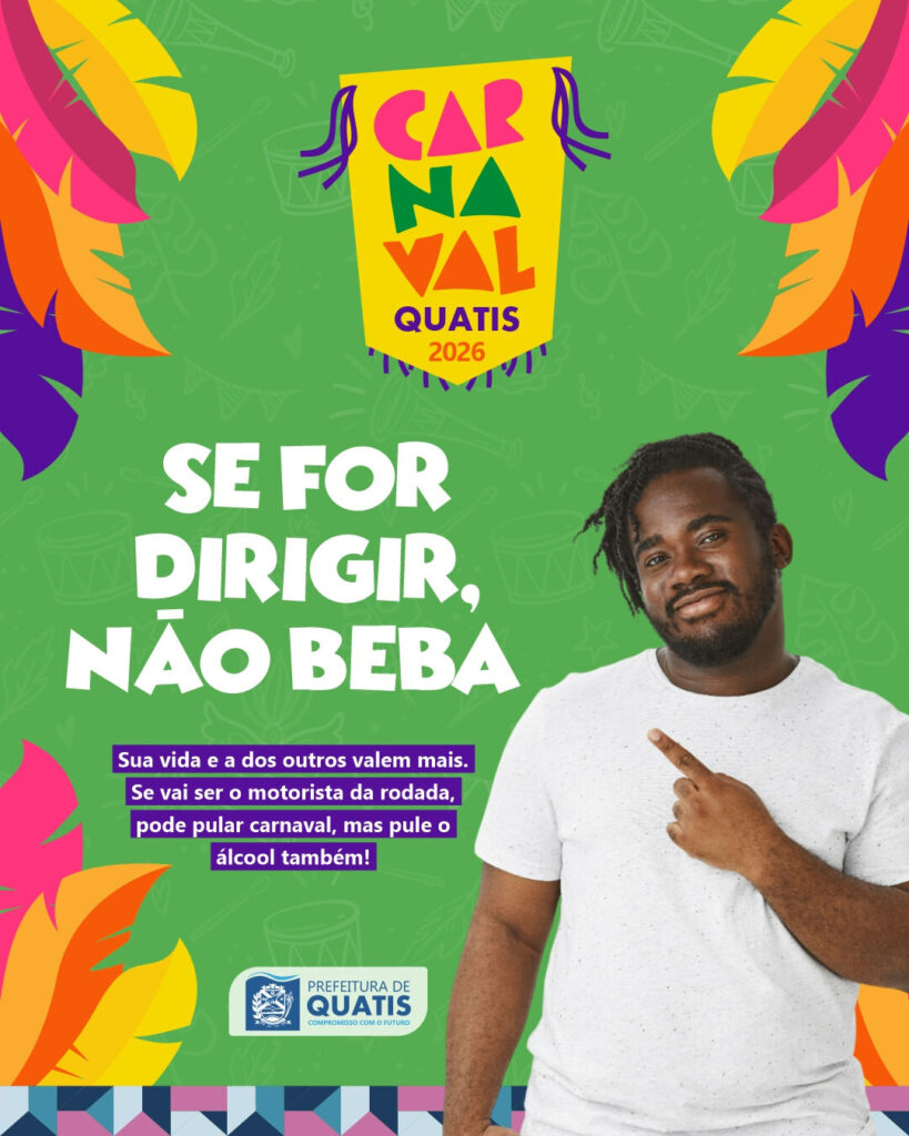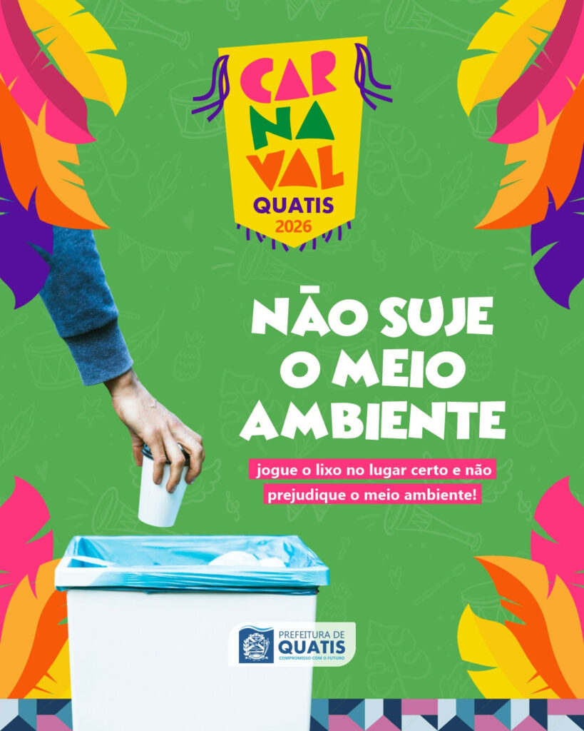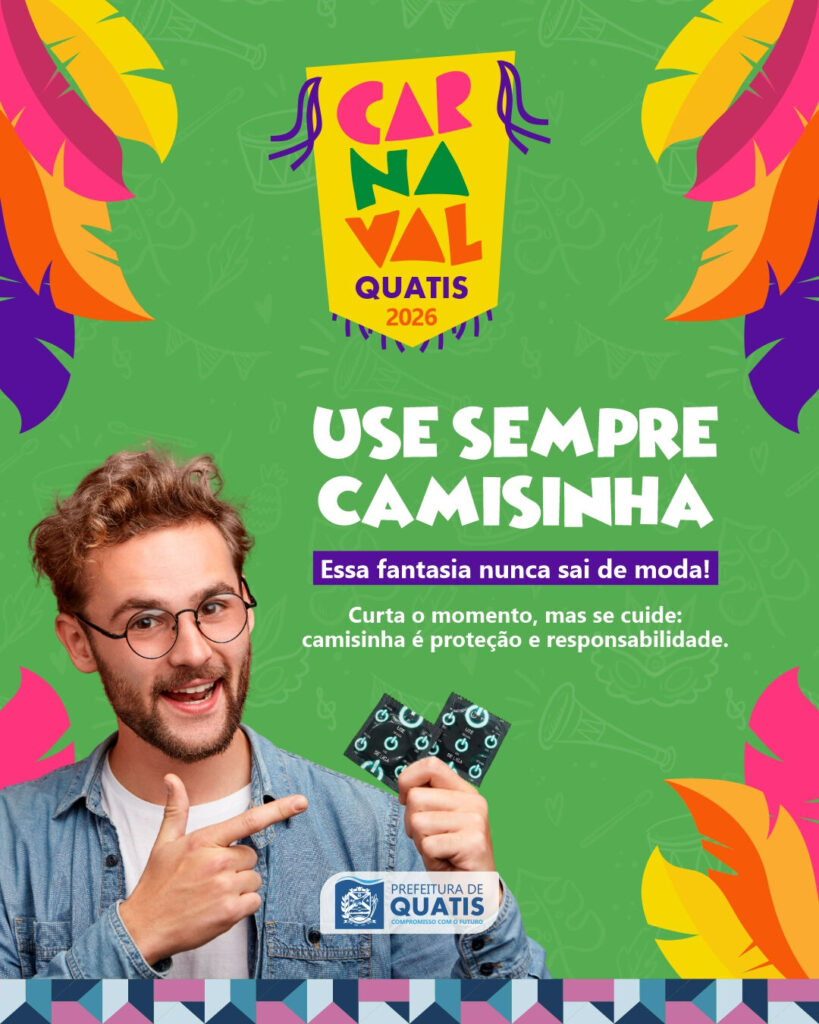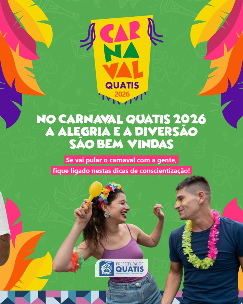Passe para o lado e veja todas as nossas dicas da campanha de conscientização para o Carnaval Quatis 2026! Aproveita e já manda para aquele seu(a) amigo(a)! Vamos juntos fazer uma festa linda, folião!