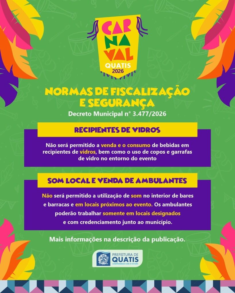 Confira as normas de fiscalização e segurança durante o Carnaval Quatis 2026, segundo o Decreto n° 3.477!