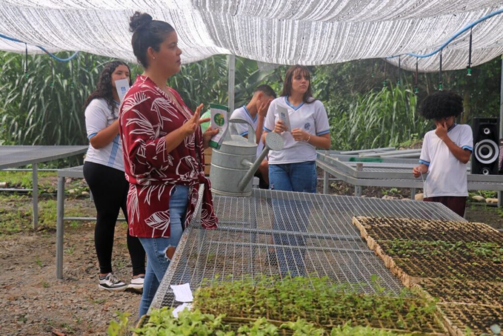 Durante a visita, os estudantes participaram de um circuito organizado em ilhas temáticas, com exposições sobre o funcionamento da estufa e a confecção de mudas, os canteiros de cultivo, os processos de compostagem e as atividades desenvolvidas na tenda multidisciplinar. A iniciativa proporcionou aos participantes uma experiência prática, aproximando-os das ações voltadas à educação ambiental, sustentabilidade e formação cidadã.