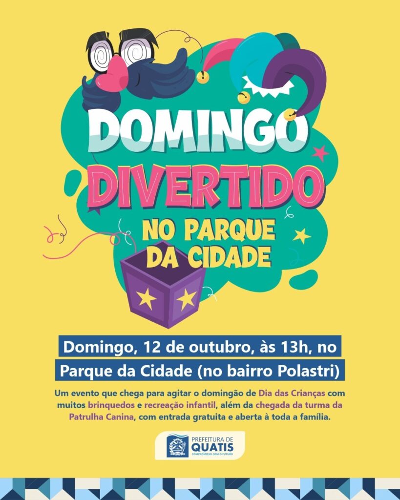 Neste domingo, dia 12, acontece o “Domingo Divertido no Parque da Cidade”, um evento que chega para agitar o domingão de Dia das Crianças com muitos brinquedos e recreação infantil.