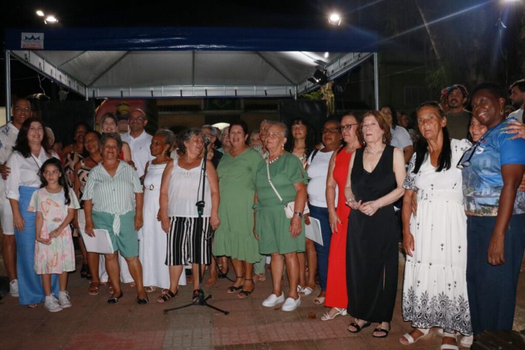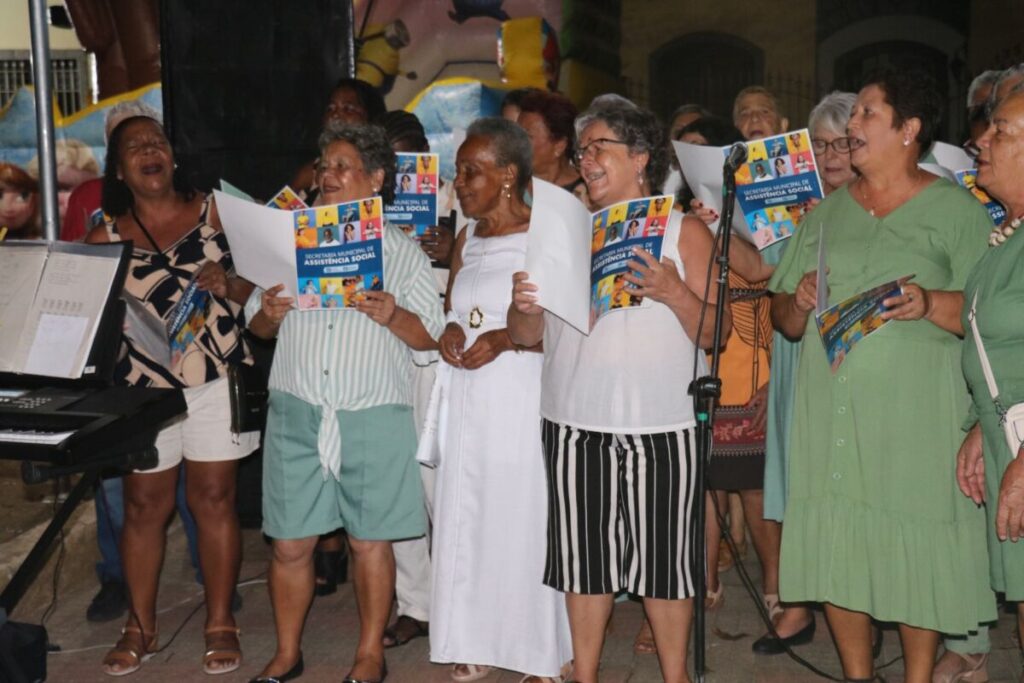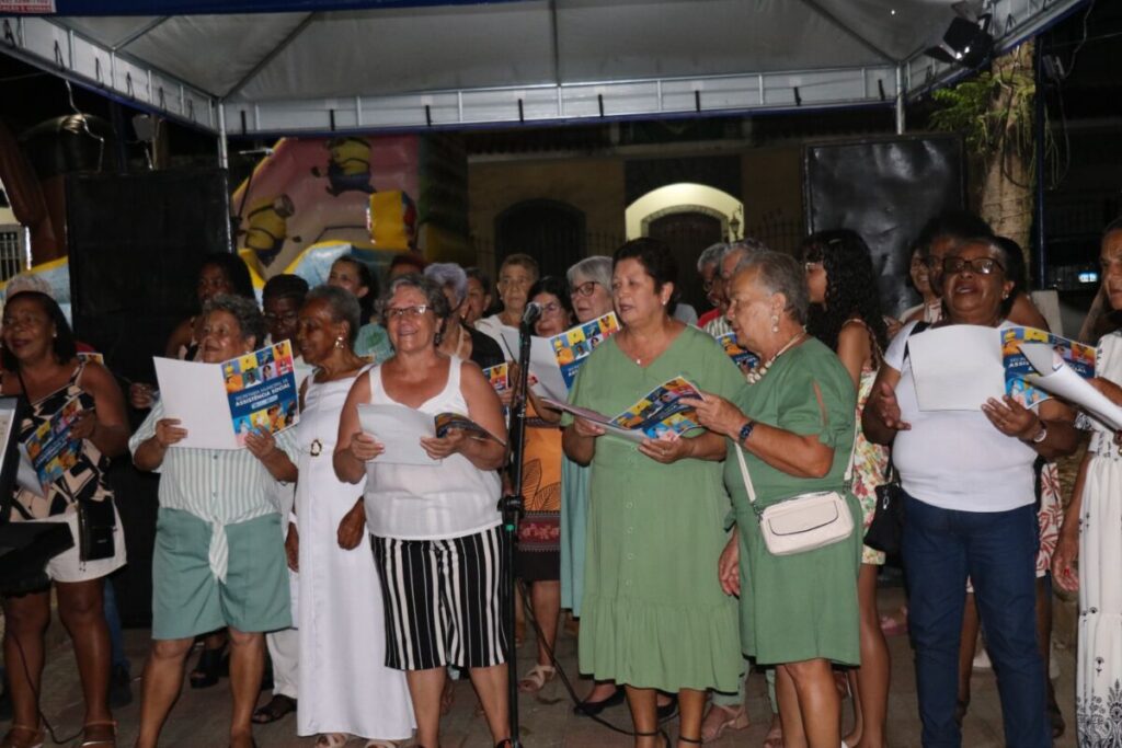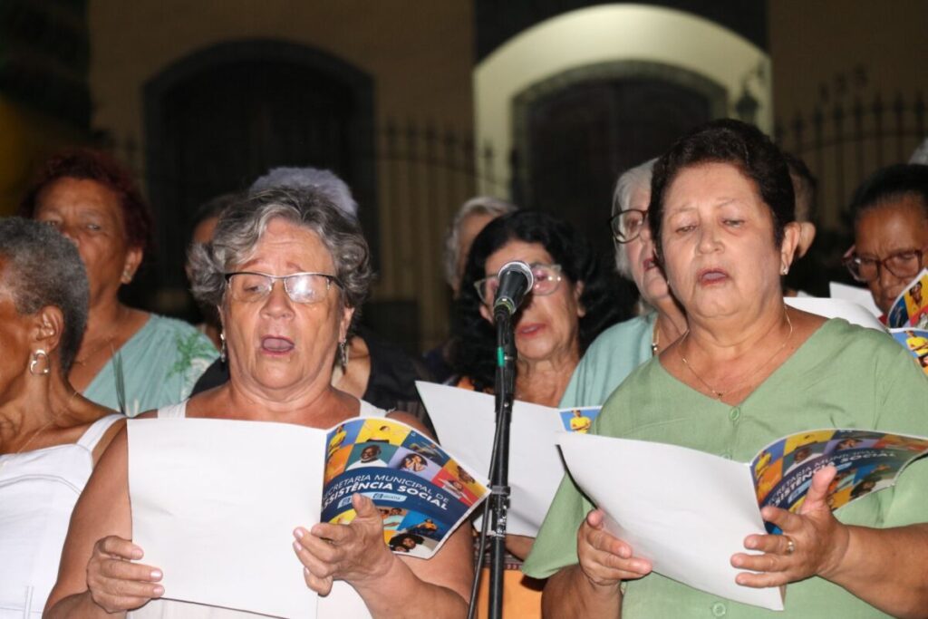 Na Praça Dr. Teixeira Brandão, o público acompanhou o desfile das idosas do Centro de Referência de Assistência Social (CRAS), que emocionou os presentes logo no início da programação. Em seguida, o grupo Feliz Idade, também formado pelas participantes dos CRAS Maria de Lourdes Batista e Dona Júlia Esperança, se apresentou com o coral das idosas, levando mensagens de alegria, união e espírito natalino ao público.