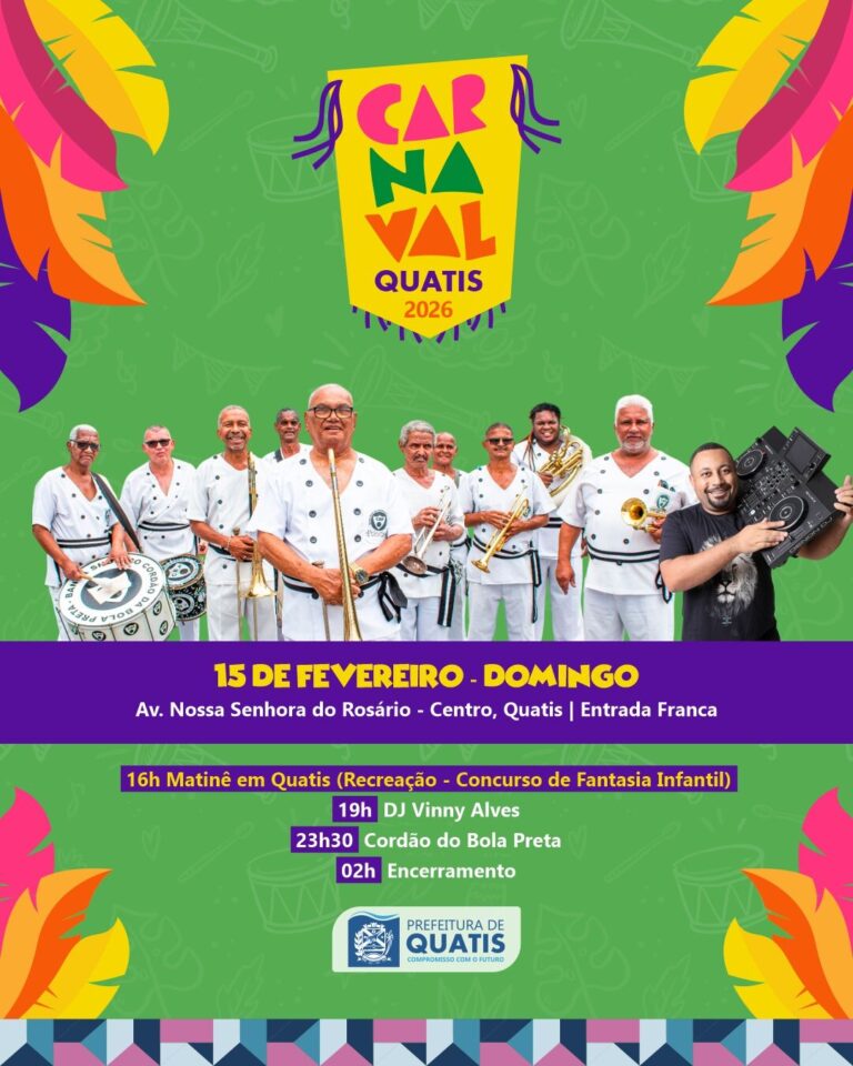 Programação dos Blocos de Rua do Carnaval Quatis 2026