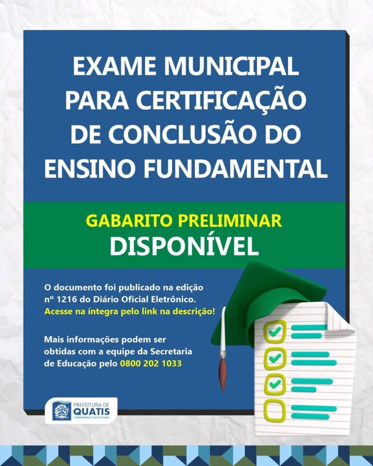 Gabarito Preliminar – Exame Municipal para Certificação de Conclusão do Ensino Fundamental do Município de Quatis (EMCEFQ)