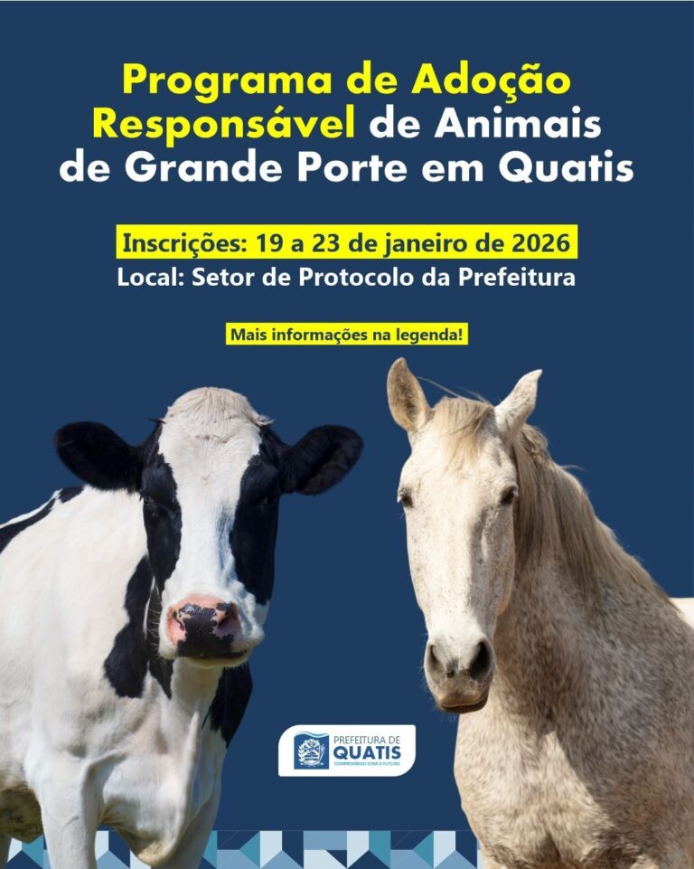 Prefeitura de Quatis abre inscrições para Programa de Adoção Responsável de Animais de Grande Porte