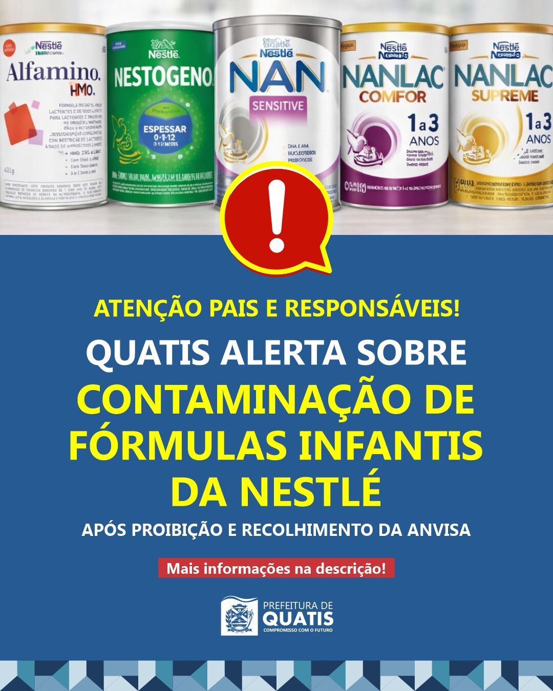 Quatis alerta sobre contaminação de fórmulas infantis da Nestlé após proibição e recolhimento da Anvisa
