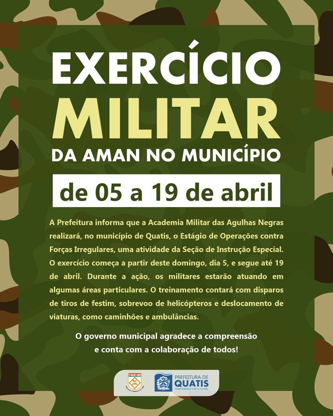 Comunicado: AMAN realizará exercício militar em Quatis a partir deste domingo (5)