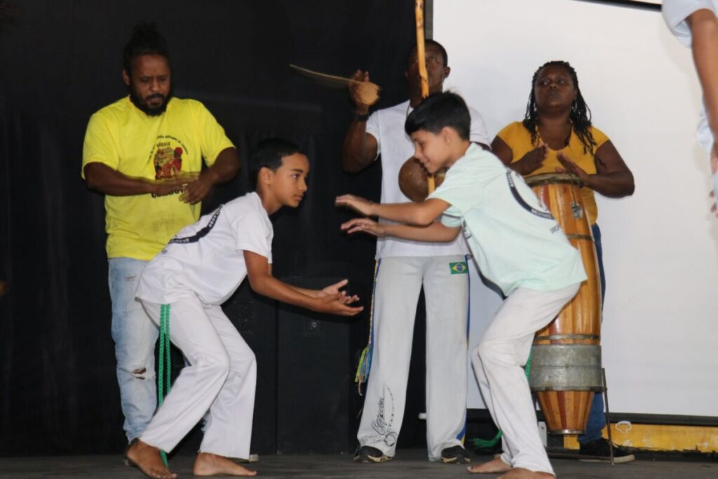 A programação destacou a valorização da diversidade cultural e da história do município, com apresentações do Jongo Suinã do Quilombo de Santana e do grupo de capoeira Dois de Ouro do professor Café, reforçando a importância de preservar e reconhecer as tradições afro-brasileiras no contexto educacional. Também aconteceu uma apresentação de violão dos alunos do CIEP 492 Municipalizado Marciana Machado de Elias.