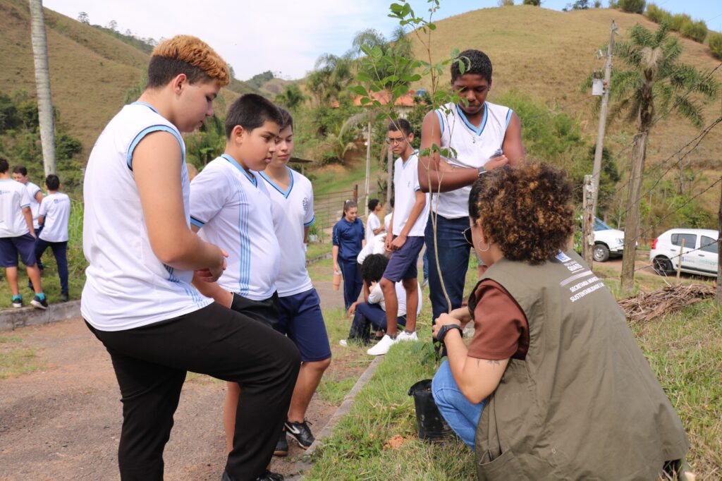 Os alunos da Escola Municipal Carlos Campos de Faria, no distrito de Falcão, em Quatis, participaram de um dia de plantio de mudas com a equipe da Secretaria de Sustentabilidade e Ambiente, da prefeitura, em comemoração ao Dia da Árvore, celebrado no último dia 21. A atividade aconteceu na tarde desta segunda-feira (29) e teve como objetivo reforçar o compromisso com a educação ambiental aos estudantes, além de conscientizar os adolescentes sobre a importância das árvores para a qualidade de vida do planeta. A ocasião foi acompanhada pela secretária de Sustentabilidade e Ambiente, Caroline Teixeira Lopes, e pela vice-prefeita e secretária de Educação, Ivone Bento.