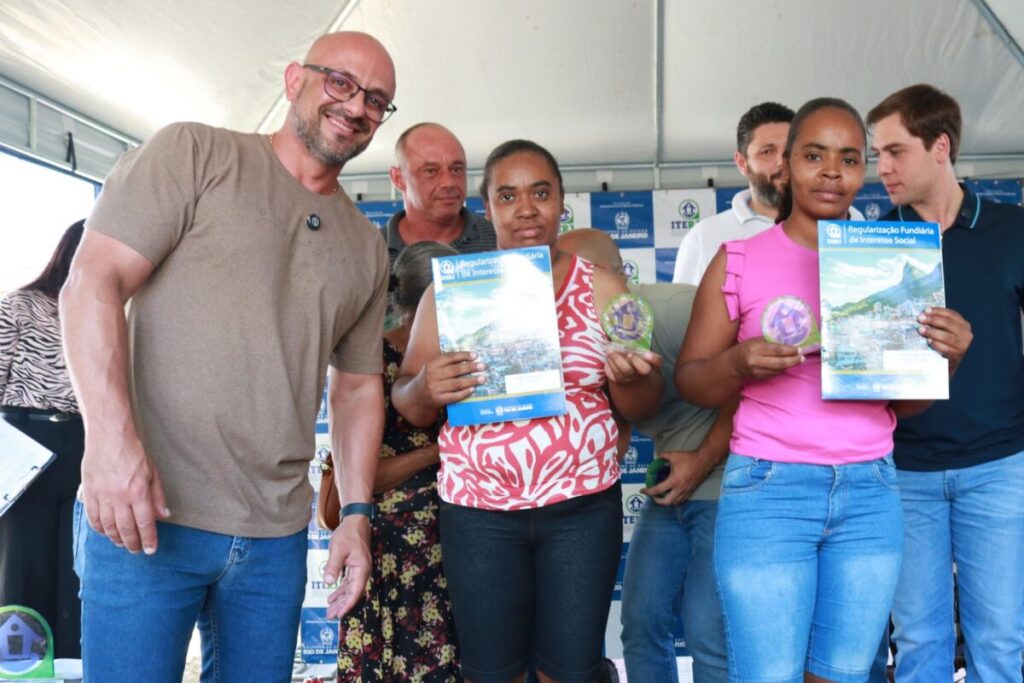 Um marco histórico para o município – A Prefeitura de Quatis, em parceria com o Instituto de Terras e Cartografia do Estado do Rio de Janeiro (ITERJ), entregou os primeiros títulos de regularização fundiária para moradores da cidade. O RGI (Registro Geral de Imóveis) garante que cidadãos tenham, de forma judicial, o direito sob o imóvel onde reside e com toda a documentação regularizada. Os primeiros títulos foram entregues na manhã do último sábado (6), na Praça Dr. Teixeira Brandão, para os moradores do Recanto dos Ipês 1 e 2, situados no bairro Nossa Senhora do Rosário.