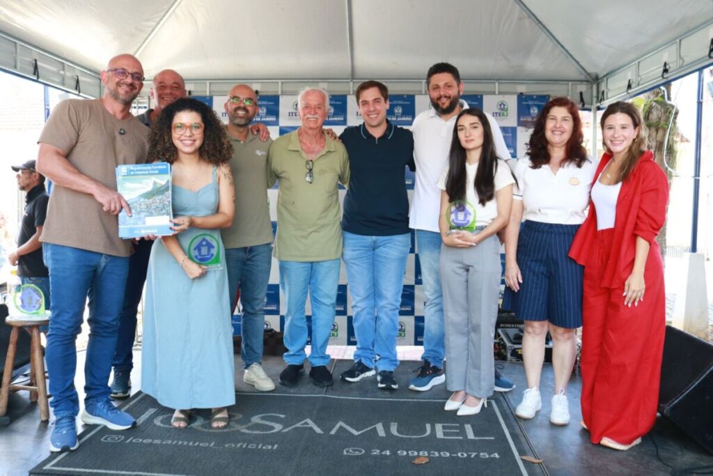 O momento contou com uma singela cerimônia com a presença de autoridades municipais e estaduais. Estiveram presentes o prefeito de Quatis, Aluísio d’Elias; a vice-prefeita, Ivone Bento; a secretária de Sustentabilidade e Ambiente, Caroline Teixeira Lopes; o presidente do ITERJ, Robson Claudino; os vereadores da Câmara Municipal de Quatis, Alex d’Elias e Leandro Sant’Anna; o deputado estadual, Jorge Felippe Neto; além da diretora de Regularização Fundiária do ITERJ, Mariana Felippe.