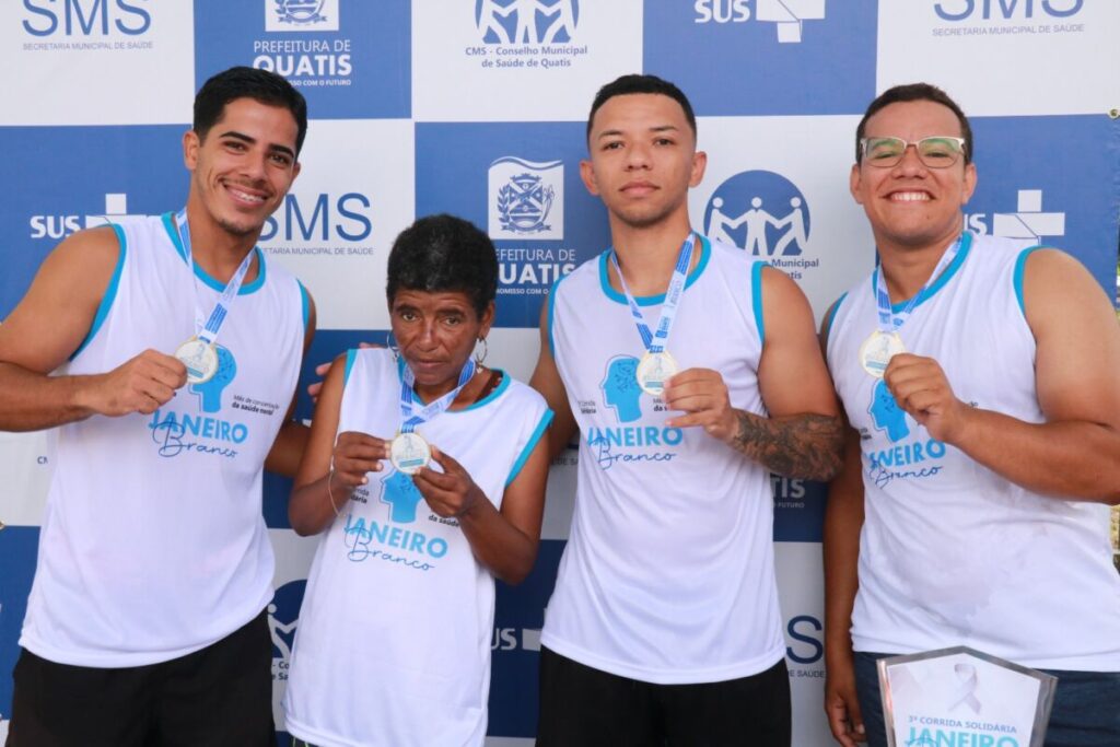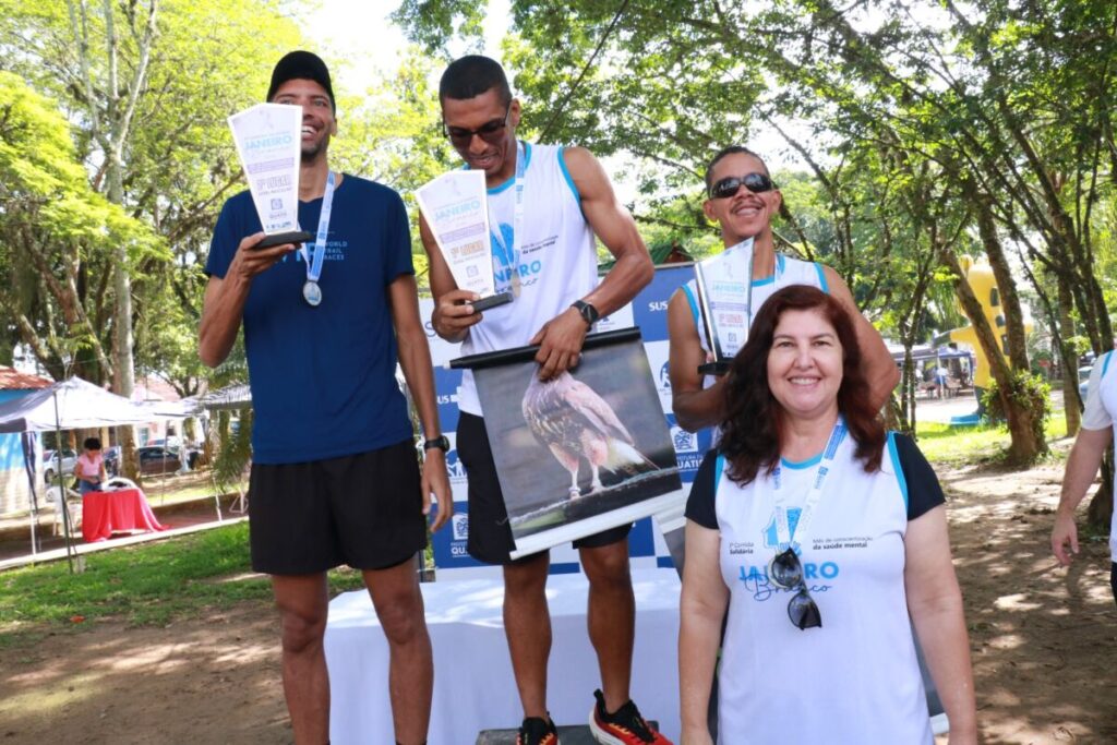 A 3ª Corrida Janeiro Branco de Quatis teve inscrições prévias e os participantes tiveram que contribuir com brinquedos, fraldas ou absorventes, itens que serão destinados ao fortalecimento da saúde da mulher, da criança e do adolescente. O evento contou ainda com a presença dos secretários de Saúde e de Esporte e Lazer, Lucas Silva e André Gomes Martins, o Jabuti, respectivamente, além da vice-prefeita, Ivone Bento, e do prefeito de Quatis Aluísio d’Elias, que reforçou a importância da iniciativa do Janeiro Branco. “Muitas pessoas acham que saúde mental só tem a ver com quem está internado ou com alguma doença mais agravada. Mas a verdade é que saúde mental também tem a ver com estresse, com ansiedade, e, por isso, a saúde mental precisa ser cuidada, para que a gente possa ter uma melhor qualidade de vida. E nada como o esporte para ajudar a seguir nesse caminho de manter a saúde mental em dia e também de ser uma oportunidade de conscientização coletiva. Cuidar da mente também é um ato de amor.” – destaca Aluísio.