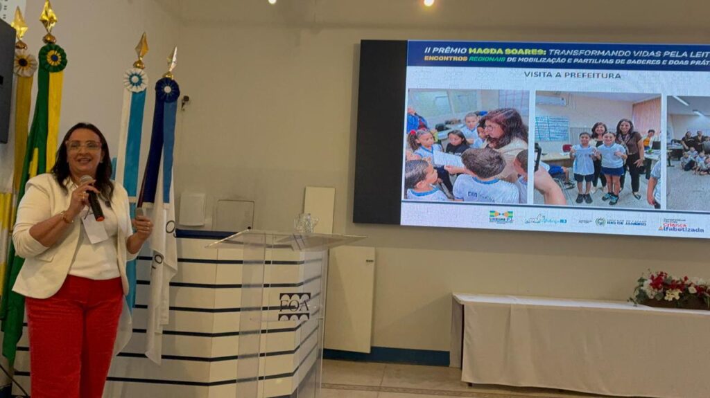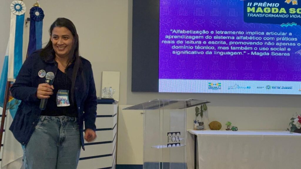 Aconteceu, no último dia 23 de setembro, em Volta Redonda (RJ), a etapa regional do Prêmio Magda Soares: Transformando Vidas pela Leitura. A iniciativa visa valorizar as boas práticas de alfabetização e recomposição da aprendizagem dos níveis do 3º ao 5º ano do Ensino Fundamental e conta com a participação da Rede Pública de Ensino Municipal do estado do Rio de Janeiro. Na ocasião, duas professoras de Quatis participaram da etapa regional do prêmio. Stéphani Lúcia, da Escola Municipal Henry Nestlé, e Vivian Aparecida, da Escola Municipal Profª Julieta Pereira Sampaio, foram as representantes do município no evento.