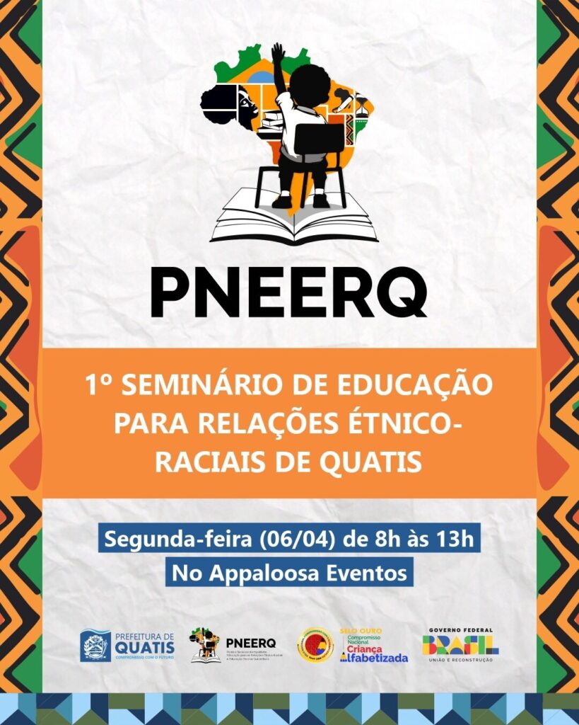 A Prefeitura de Quatis vai realizar o 1º Seminário de Educação para Relações Étnico-Raciais (ERER) do município. O evento acontece na próxima segunda-feira (6), das 8h às 13 horas, no Appaloosa Eventos. A programação contará com uma palestra conduzida por André Vidal, agente de Governança da Política Nacional de Equidade, Educação para as Relações Étnico-Raciais e Educação Escolar Quilombola (PNEERQ) na região Sul Fluminense. A entrada é gratuita e aberta à população.