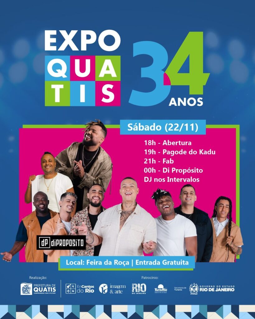 Nos vemos lá? Venha curtir com a gente essa grande festa em celebração aos 34 anos de Quatis – a nossa cidade, a nossa história, a nossa alegria!