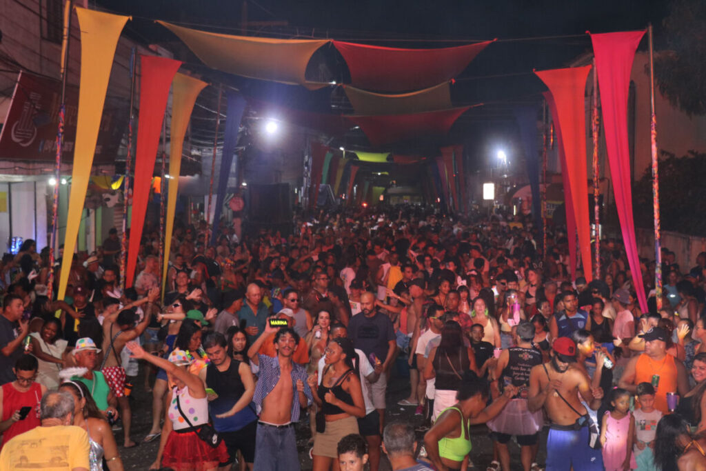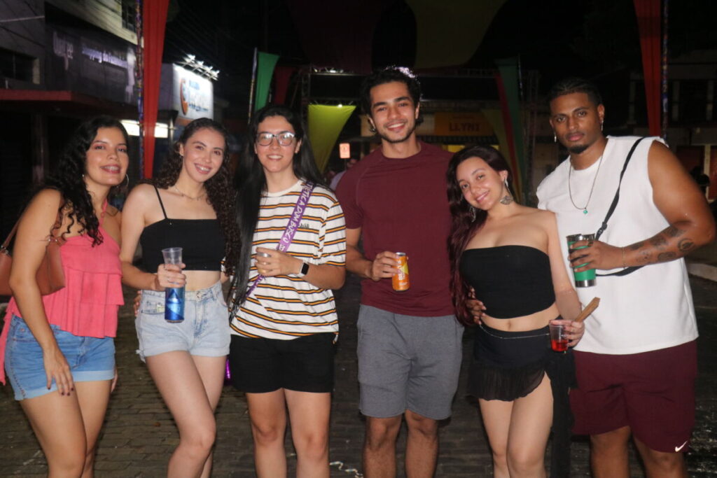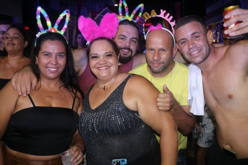 DJ Vinny também agitou a noite dos foliões com muita música nas caixas de som. O evento é realizado na Avenida Nossa Senhora do Rosário, local que recebe grande público para se jogar na folia do melhor carnaval da região. Entre muitas fantasias, brilho e diversão, a festividade reúne cultura e muita alegria entre os foliões que chegam para curtir o melhor da folia local.