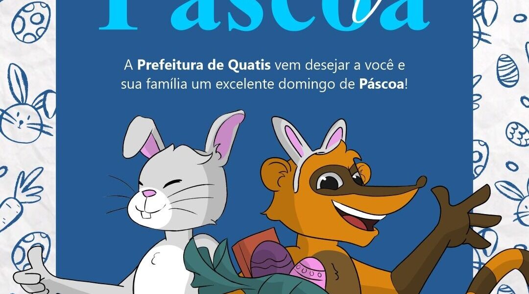 A Prefeitura de Quatis vem desejar a você e sua família um excelente domingo de Páscoa! Que a paz, a esperança e o amor que esta data tanto carrega possam estar sempre presentes em sua vida e na vida de todos! Desejamos que seu dia seja de muita união, reflexão e muito amor com a família e amigos! Que o