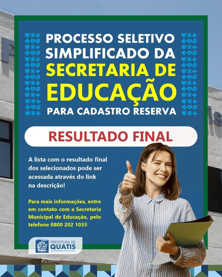 Resultado Final do Processo Seletivo Simplificado da Secretaria de Educação de Quatis